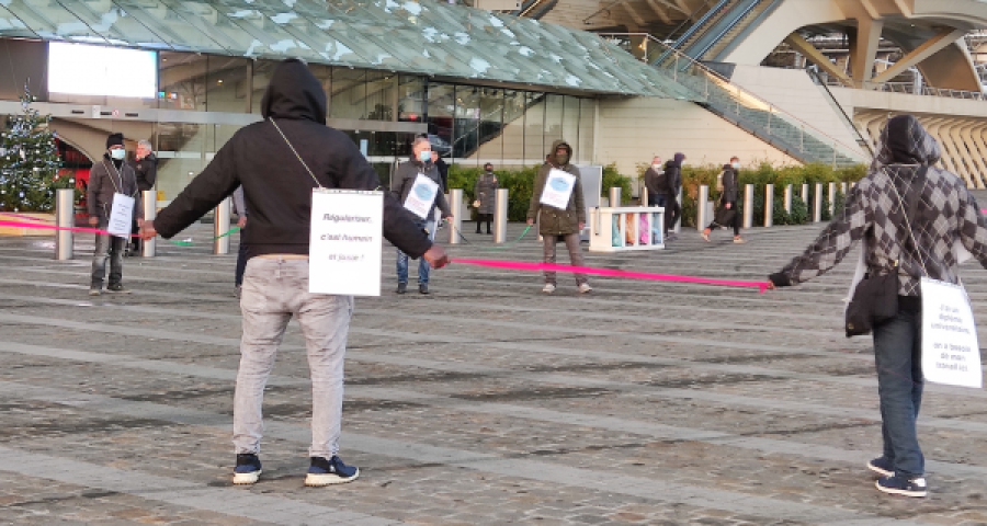 Action de sensibilisation pour la régularisation des sans-papiers à Liège-Guillemins