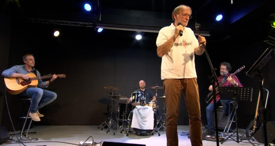 Doc Fernand, accompagné par les Sang Gain, chante sa pratique médicale.