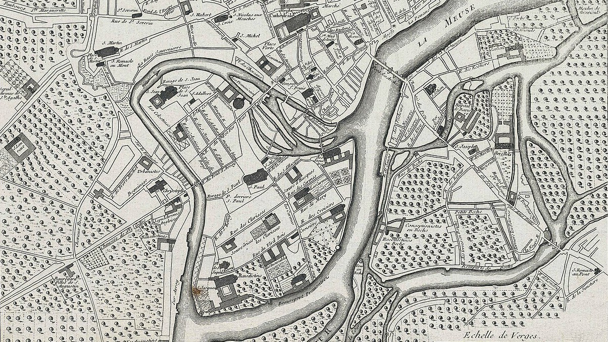 Jusqu’à la fin du XVIIIᵉ siècle, une immense cathédrale dominait le centre-ville, juste en face du palais des princes-évêques. Son nom : la cathédrale Notre-Dame-et-Saint-Lambert.