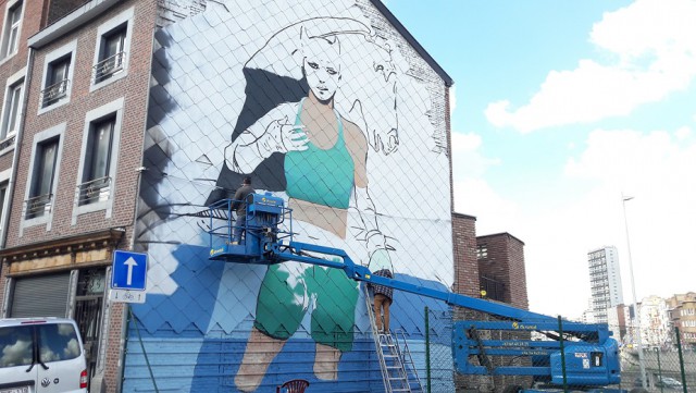 Les artistes Soke et Michaël Nicolaï sont actuellement en train de peindre la façade du bâtiment situé à côté du Pont d'Amercoeur, au croisement entre le Quai du Longdoz et la rue Basse-Wez. Cette fresque est le fruit d'une collaboration entre La Boverie et Paliss'art.