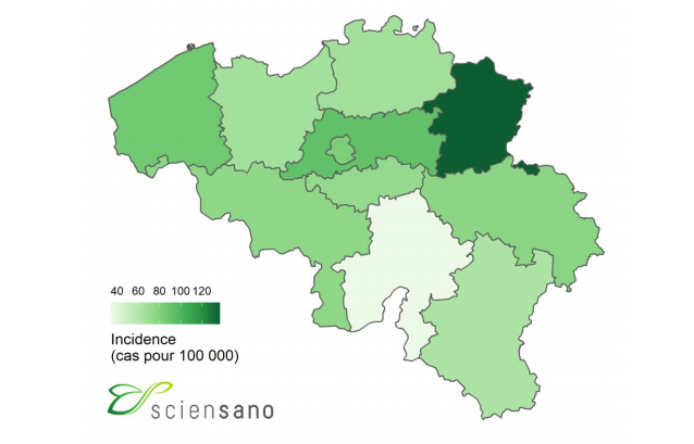 Selon Sciensano, "l'augmentation des cas en Wallonie (pour la première fois supérieure à la Flandre, ndlr) est due à l'envoi de données rétrospectives par un nouveau laboratoire effectuant le diagnostic".