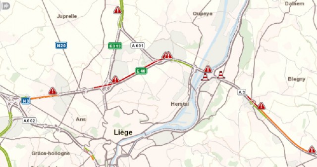 Accident sur l'E40 (A3) Aachen>Liège > Bxl/Bsl à hauteur de Alleur en direction de Brussel/Bruxelles. Bandes de droite et du milieu obstruées, circulation fortement ralentie.