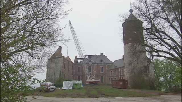 A Chokier, 10 jours après l'important incendie qui a ravagé une bonne partie du château, l'heure est maintenant aux travaux de consolidation . Une énorme grue a été placée dans l'enceinte de la bâtisse.