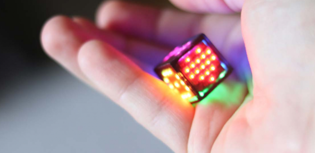 Avec Dicees, on dispose toujours d’un dé à 6 faces, mais elles sont toutes équipées d’un afficheur couleur à LEDs. Et le dé est connecté.