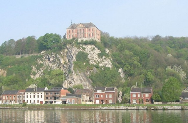 La façade que l’on découvre en longeant le fleuve est de style Renaissance, très en vogue au 18e siècle. Au 14e siècle c’était un château-fort dont les fondations faisaient partie intégrante du rocher. Il résista avec succès à de nombreux assauts, mais fut brulé par les Hutois à la fin du 14e siècle, lors des démêlés qui les opposaient au prince-évêque Englebert de La Marck. Aujourd’hui, la partie la plus ancienne est la base de la tour située au nord-ouest.