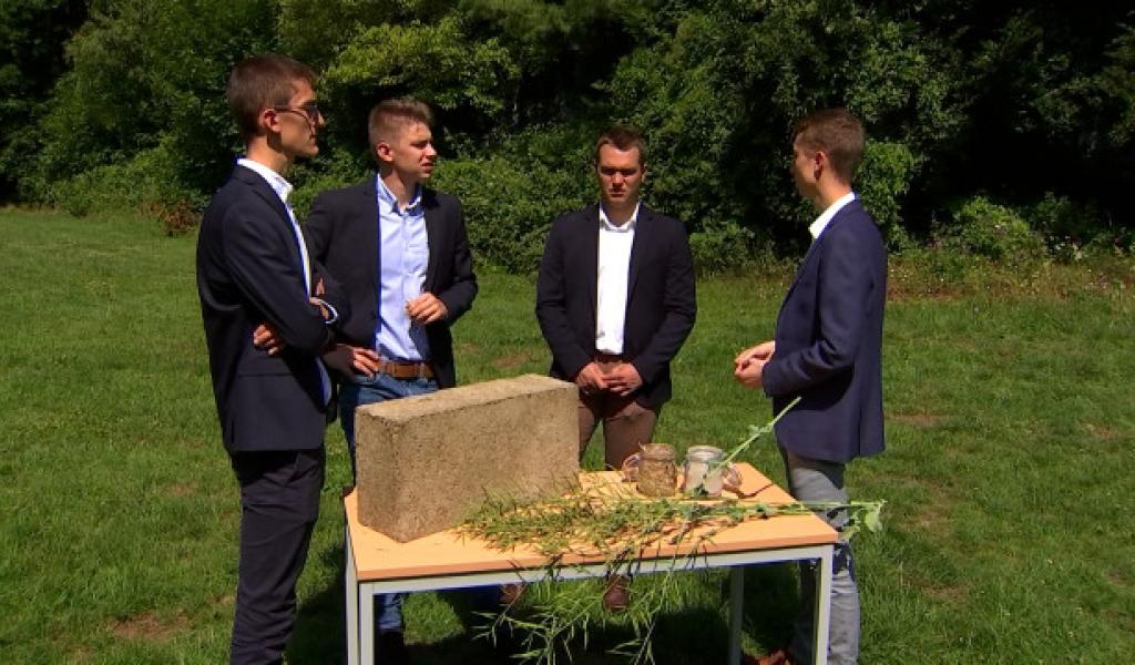 5 étudiants agronomes de la Haute Ecole Charlemagne à Huy travaillent sur un projet d'isolation à base de pailles de Colza. Cette jeune startup d'étudiants liégeois partira représenter la Belgique à la finale Européenne des jeunes entreprises à Tallinn en Etonie ce 12 juillet 2022. Ce qu'ils proposent c'est de revaloriser la paille de colza, qui est un déchet pour les agriculteurs et d'en faire des blocs isolants bio sourcés. ( Fannie C)