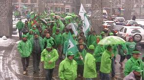 Les syndicats se disent très satisfaits de la mobilisation générale, ce lundi, suite au mot d'ordre de grève générale. Nous verrons dans notre journal qu'elles en ont été les différentes conséquences en région liégeoise. La CSC organisait ce matin un grand rassemblement place du Marché à Liège. 400 militants ont manifesté contre l'austérité décidée par le gouvernement. Un cortège s'est rendu au palais de justice avant de mener des actions de sensibilisation dans les agences bancaires du centre-ville.