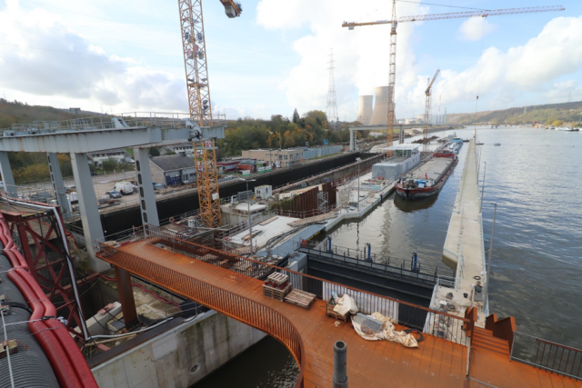 Ensuite, les travaux se poursuivront par le démantèlement de l’écluse de 136x16 mètres en service depuis 1958. Cette dernière sera remplacée par une grande écluse de 225x25 mètres (capacité de 9.000 tonnes). Pendant les deux années nécessaires à la réalisation de cette infrastructure de grand gabarit, la nouvelle écluse de 225X12,5 mètres assurera la navigation.
