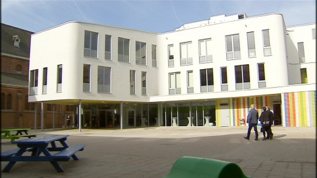 L'Evêque de Liège, Monseigneur Delville était présent et à béni l'établissement scolaire.