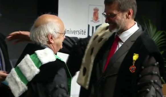 Le Recteur a donc remis les insignes lors d'une cérémonie aux amphithéâtres de l'Europe aux biologistes Laurent Ballesta (France) et Sylvia Earle (USA). Egalement mis à l'honneur, le sociologue britannique Paul Gilroy et l'écrivain français Eric Orsenna.