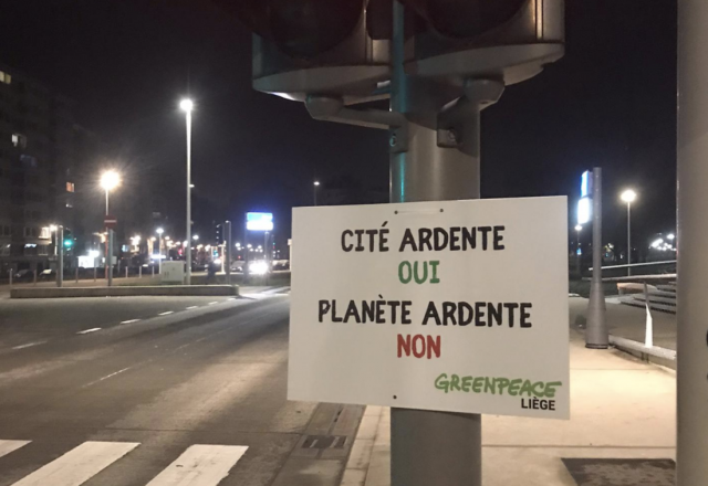 En ce 8 décembre, Journée Mondiale du Climat, une action a été menée tôt le matin par des militants de Greenpeace Liège.