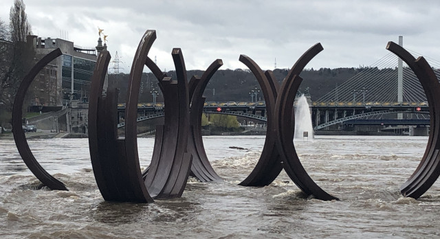 La Meuse a connu une importante crue ce week-end. La base de la sculpture des Arcs de Venet c'est d'ailleurs retrouvée sous les eaux.