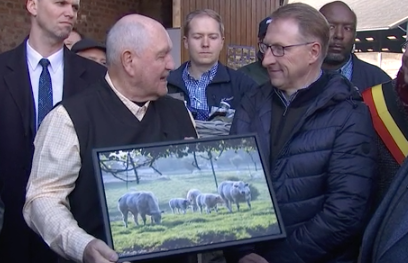 Il s'est rendu dans une ferme d'élevage de Blanc Bleu Belge dans une exploitation d'Awans active depuis plus d'un siècle. Fils d'agriculteurs, vétérinaire de formation, le visiteur américain a séduit l'éleveur local qui a trouve face à lui un connaisseur.