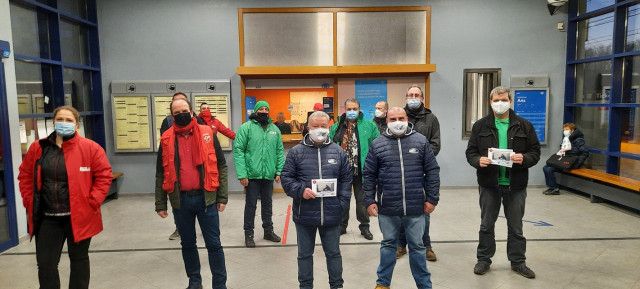 À l'initiative de l'ASBL Navetteurs.be, une action contre la fermeture des guichets dans les gares du pays était organisée lundi matin devant l'établissement ferroviaire d'Ans, où étaient présents également des voyageurs ainsi qu'une délégation de la CSC-Transcom et de la CGSP-Cheminots.