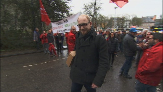 A son arrivée au Parlement wallon, il a été accueilli par les applaudissements des manifestants…