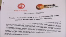 Frédéric Daerden et André Namotte veulent continuer à travailler ensemble à Herstal. Un accord électoral a été décidé à l'unanimité par les instances des deux formations, le parti socialiste herstalien et le groupe EPH « « Ensemble pour Herstal ».