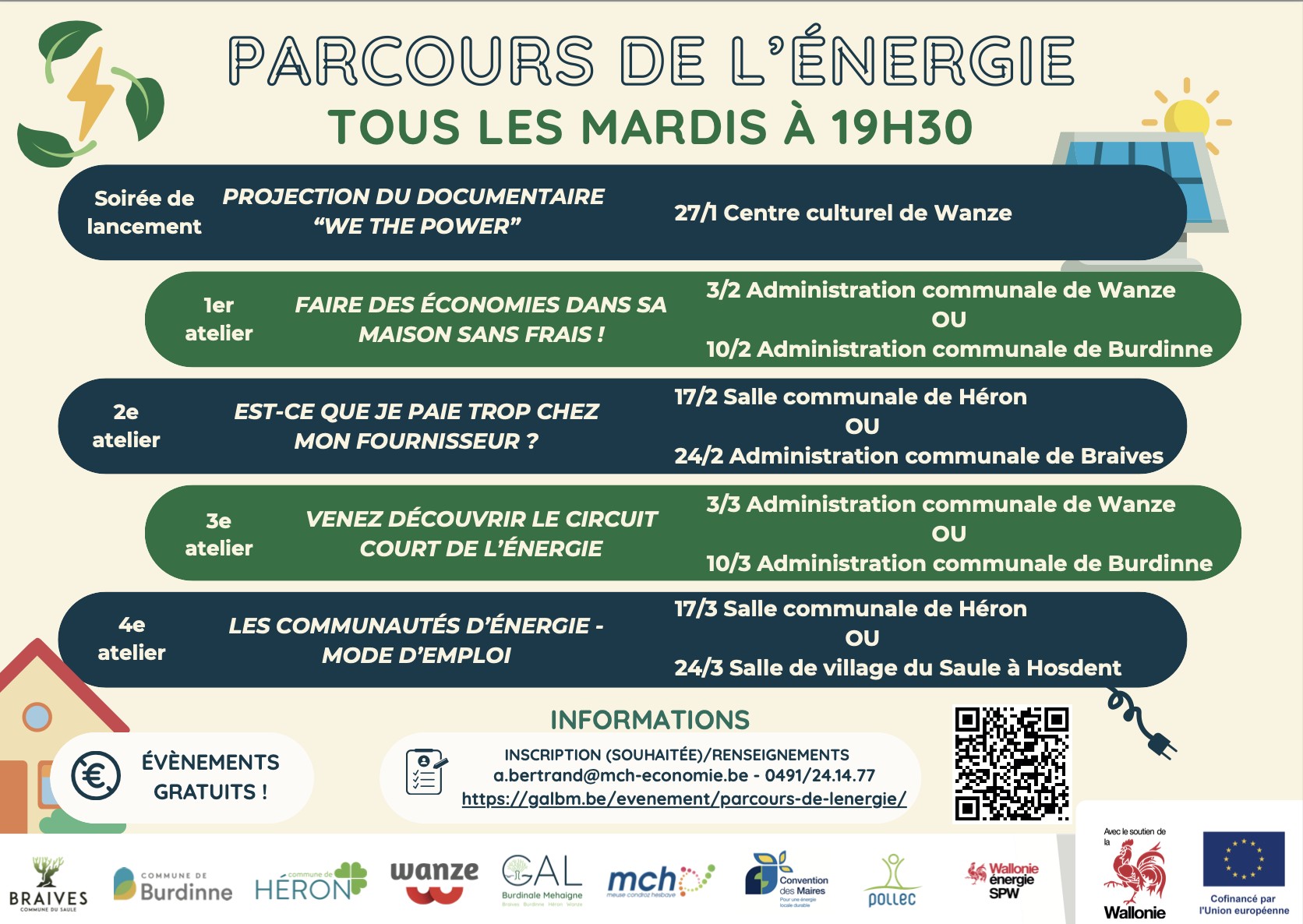 Les huit soirées se dérouleront tous les mardis à 19h30, selon un système de tournante dans les quatre communes.