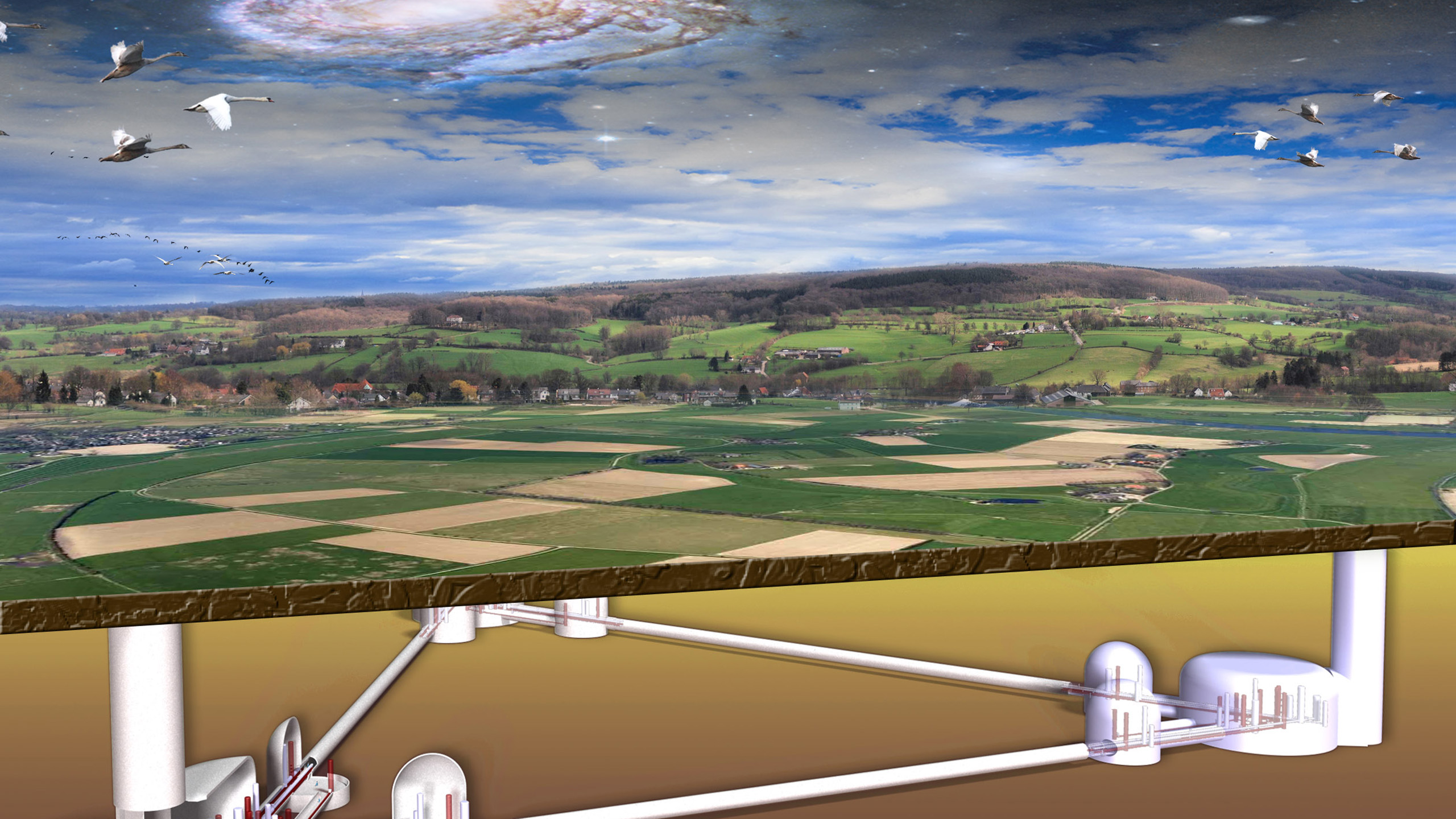 Le projet de Téléscope Einstein ne vise pas les étoiles mais consiste en la construction d'un détecteur d'ondes gravitationnelles à 250 mètres sous terre. Produites lors d'événements cosmiques extrêmes (collision de trous noirs ou fusion d'étoiles à neutrons), les ondes gravitationnelles sont des ondulations de l'espace-temps qui traversent l'Univers et donc la Terre. Avec cet observatoire, les chercheurs ambitionnent de disposer d'un instrument permettant de capter 1 000 fois plus d'ondes que les détecteurs actuels. Ils espèrent ainsi accroître les connaissances sur la physique des trous noirs, l'évolution des étoiles et les instants qui ont suivi le Big Bang.