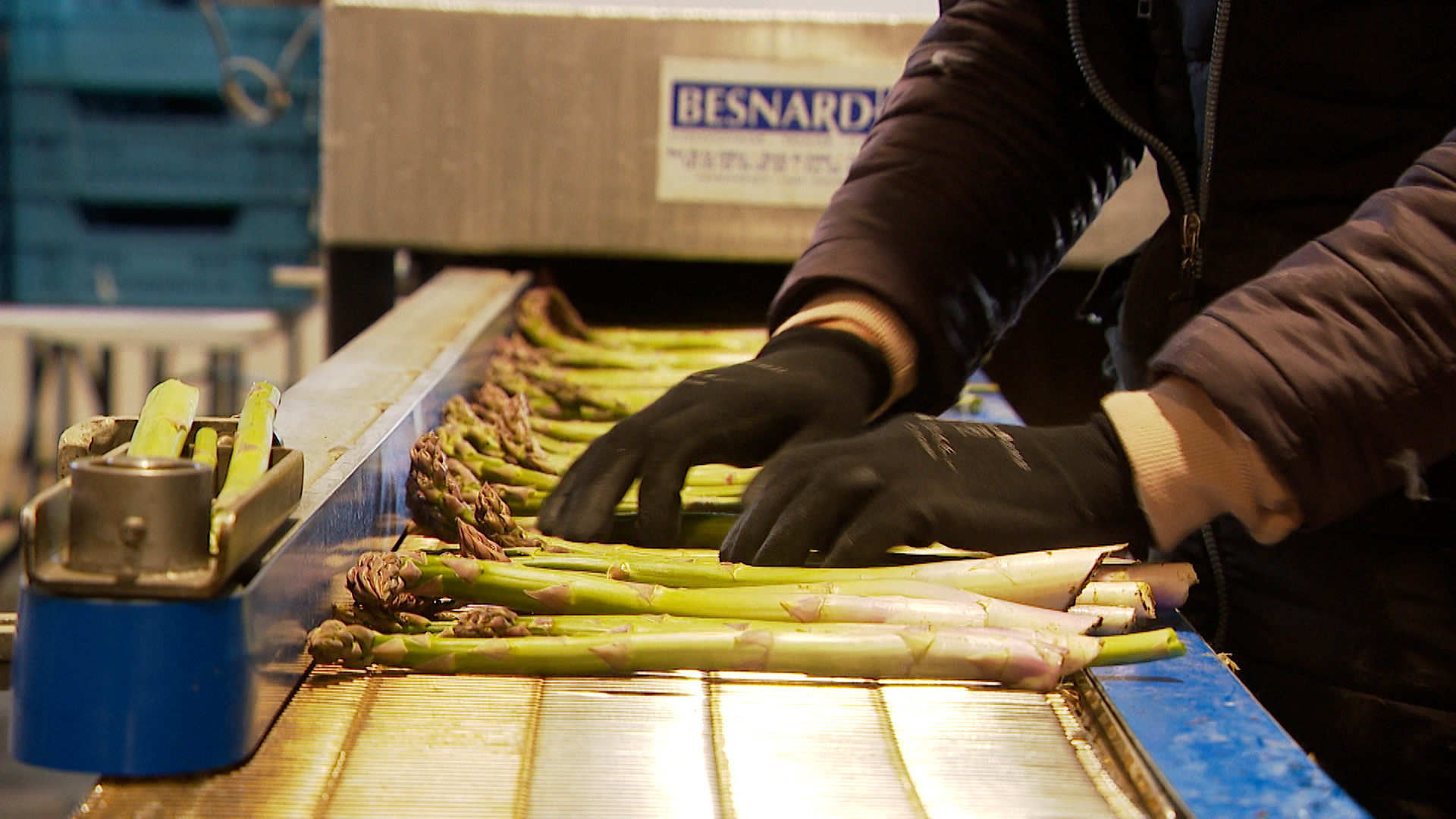 Une fois récoltées, les asperges sont triées par calibre avant d’être mises en bottes. Elles sont destinées aux commerces et restaurateurs locaux et à la grande distribution.