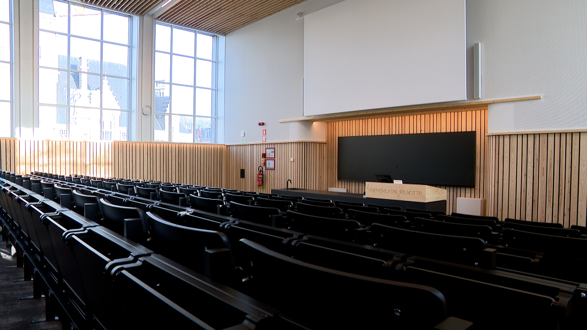 Après un an et demi de travaux, les amphithéâtres Godefroid Kurth et Maurice Wilmotte ont été entièrement rénovés. D’une capacité de 310 places chacune, les 2 salles principalement occupées par les étudiants de philo et lettres ont totalement changé de visage pour un meilleur confort, notamment thermique et acoustique.