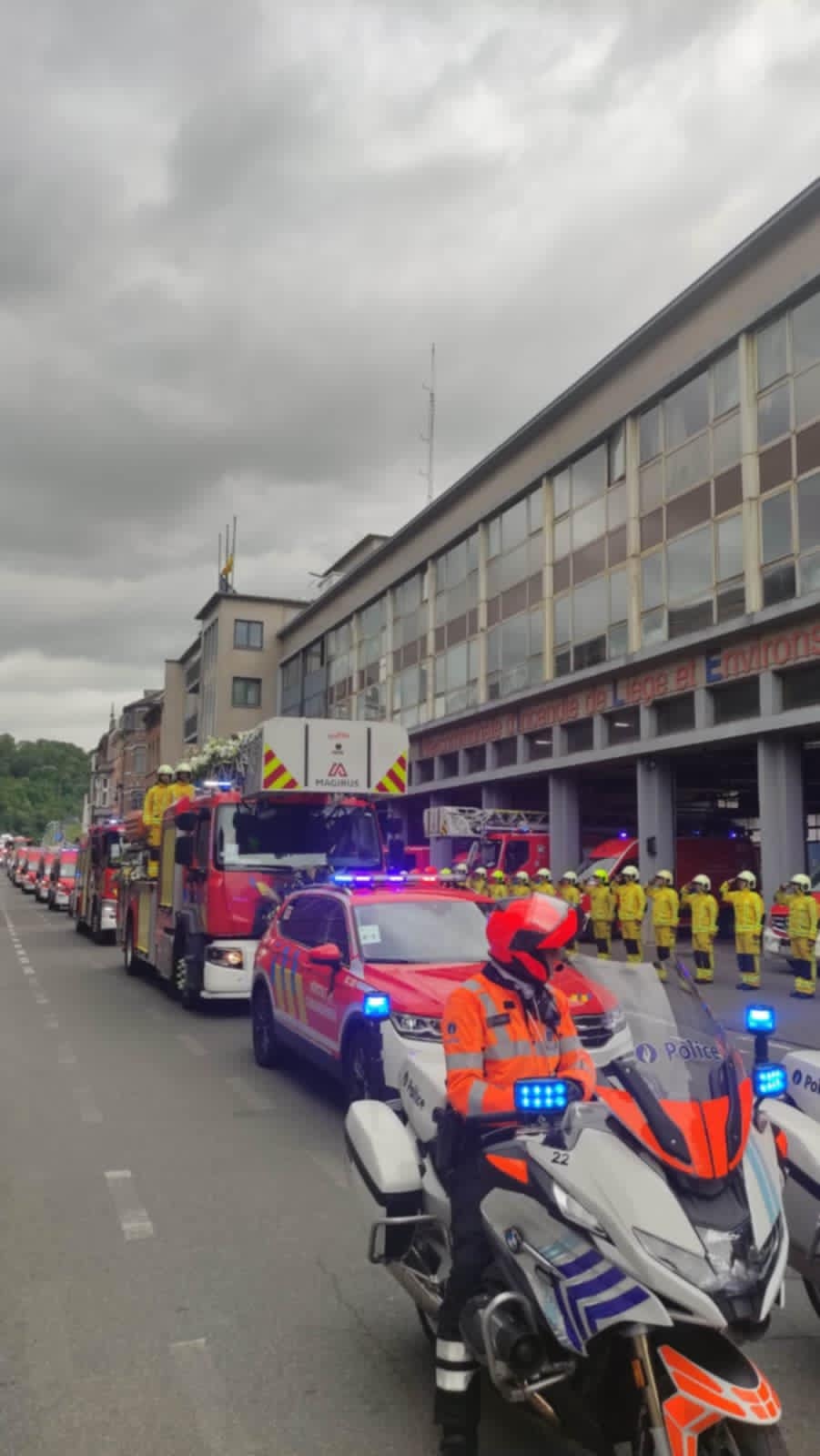 La levée du corps s'est déroulée vers 12H à Robermont en présence d'environ 200 personnes, principalement des collègues du pompier décédé. Le cercueil a été hissé sur un camion d'intervention fleuri et le cortège funéraire s'est rendu à la Cathédrale Saint-Paul, où la cérémonie d'adieu s'est déroulée en présence de 800 personens.