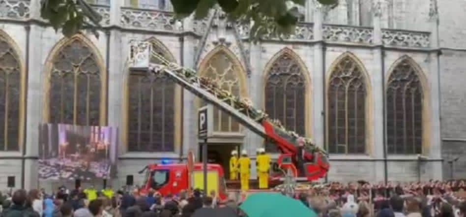 Le long cortège de camions est passé devant la caserne Ransonnet, où les pompiers en service ce jeudi ont rendu un hommage à leur collègue en organisant une longue haie d'honneur. Une 2e haie d'environ 200 pompiers a accueilli le cortège dans le tournant Saint-Paul, près de l'édifice religieux.
