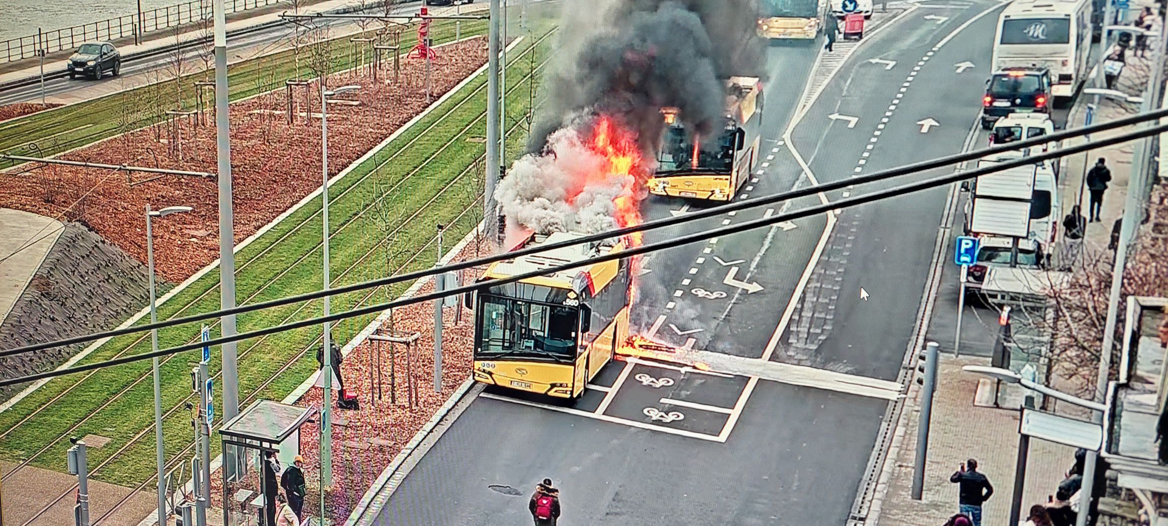 Un bus a pris feu vers 10h45 sur le quai St-Léonard, à hauteur du carrefour avec la rue du Commandant Marchand.