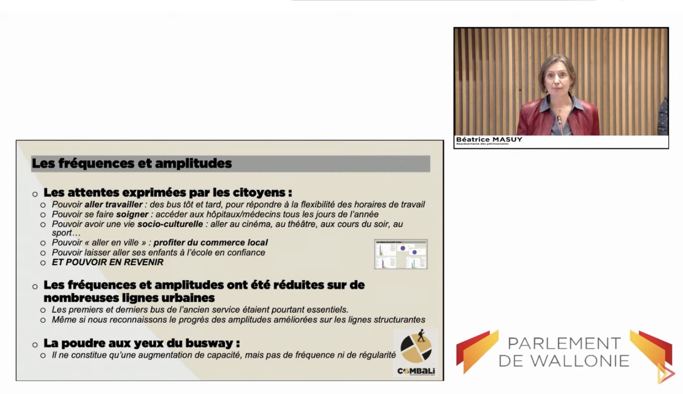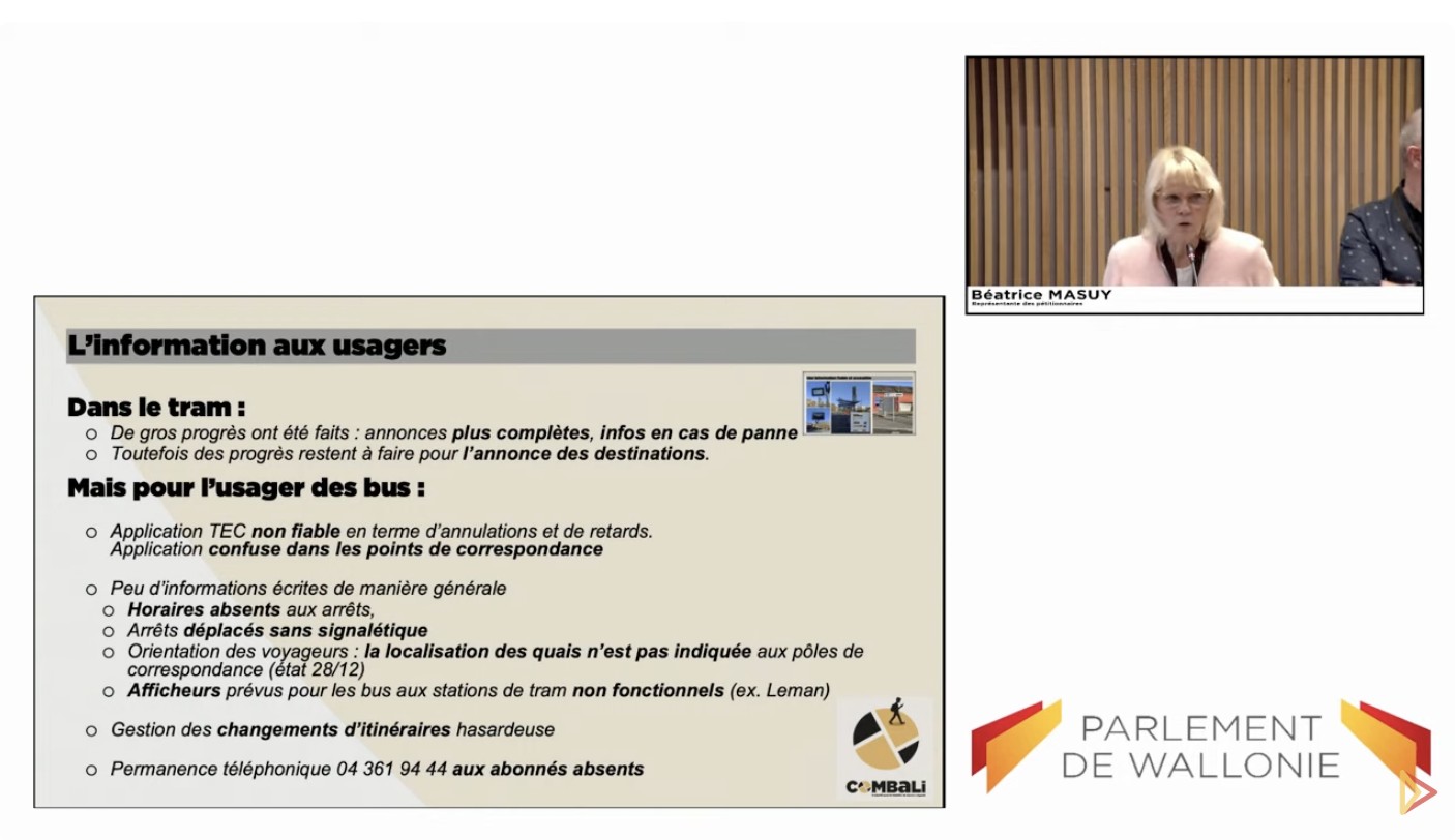 Fort de sa pétition ayant recueilli plus de 2600 signatures, le collectif CoMBaLi (Collectif pour la Mobilité à Liège) a été longuement entendu ce mardi en commission « mobilité » du Parlement Wallon.