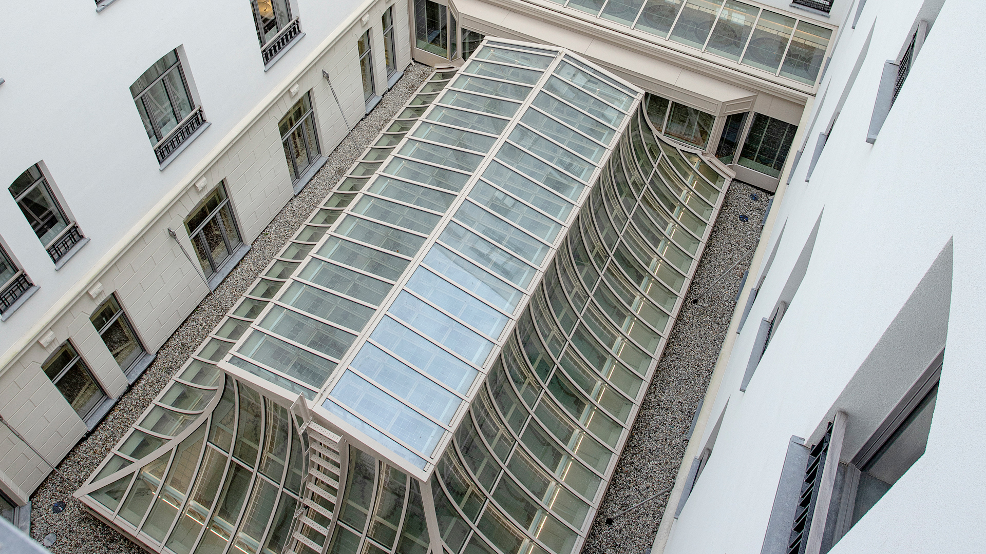 La verrière du Corinthia Astoria n’a pas été restaurée, mais entièrement reconstituée. Démonté, il y a plus d’un siècle, il n’en restait rien. Elle exigeait une réplique parfaite de l’originale de 1910, car classée au patrimoine. "C'est une belle verrière avec beaucoup de formes courbes. C'était un peu un challenge à ce niveau, mais aussi à d'autres niveaux, avec notamment l'inscription dans le bâtiment patrimonial sur des anciennes poutres existantes. Il y avait pas mal de choses particulières dans ce dossier. Ça nous a tout de suite stimulés de pouvoir tenter de réaliser ce dossier-là, on a tout de suite été partants." détaille l'ancienne propriétaire.