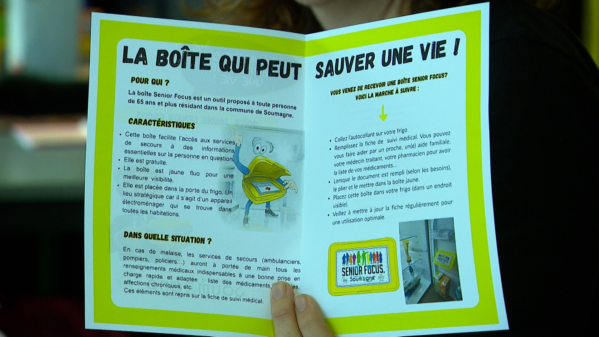 La commune de Soumagne distribue gratuitement des boîtes jaunes pour les seniors. Des boîtes à mettre dans leur frigo avec leurs données médicales pour les services de secours en cas de problème. C’est le CCA qui est à l’initiative de ce projet.