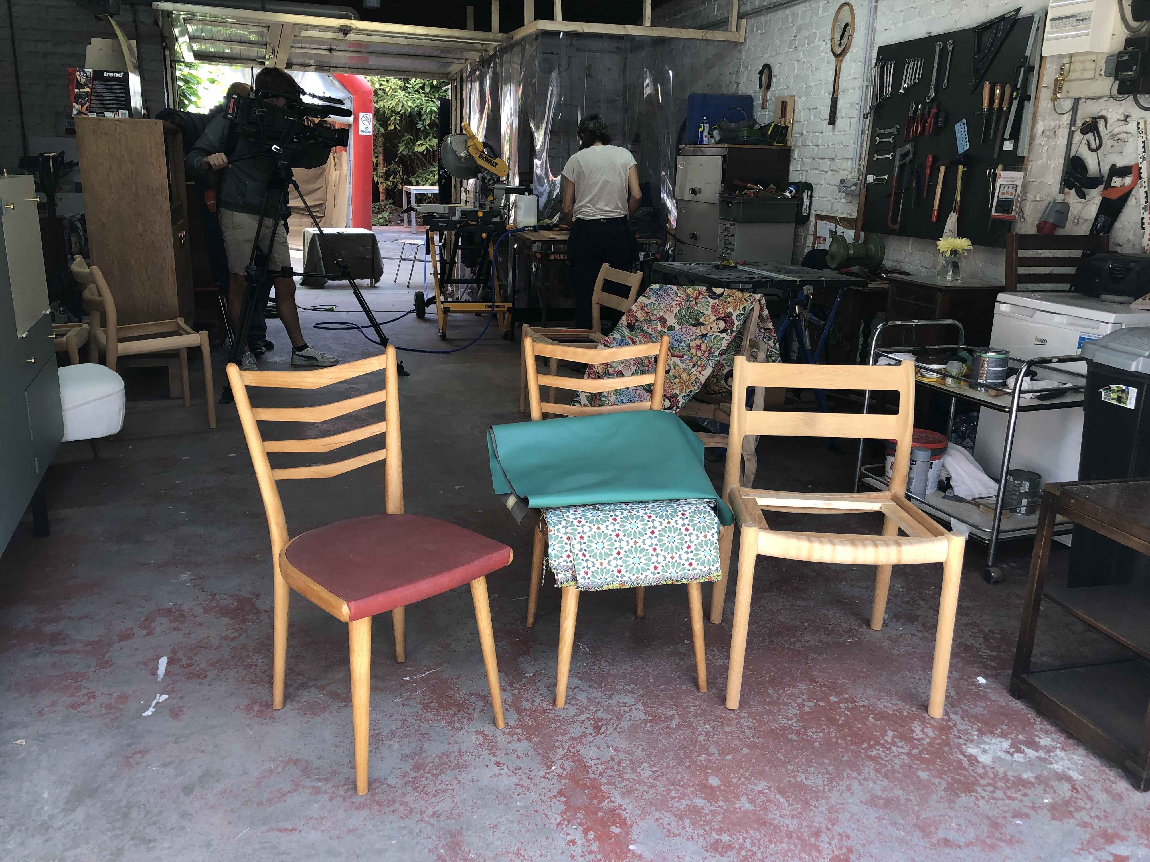 Aérogommage pour rendre à un meuble son aspect d'origine, travaux de garnissage pour donner une nouvelle vie à des chaises, peinture, customisation...chaque meuble traité gagne en séduction et donc en valeur marchande. C'est le principe de l'upcycling