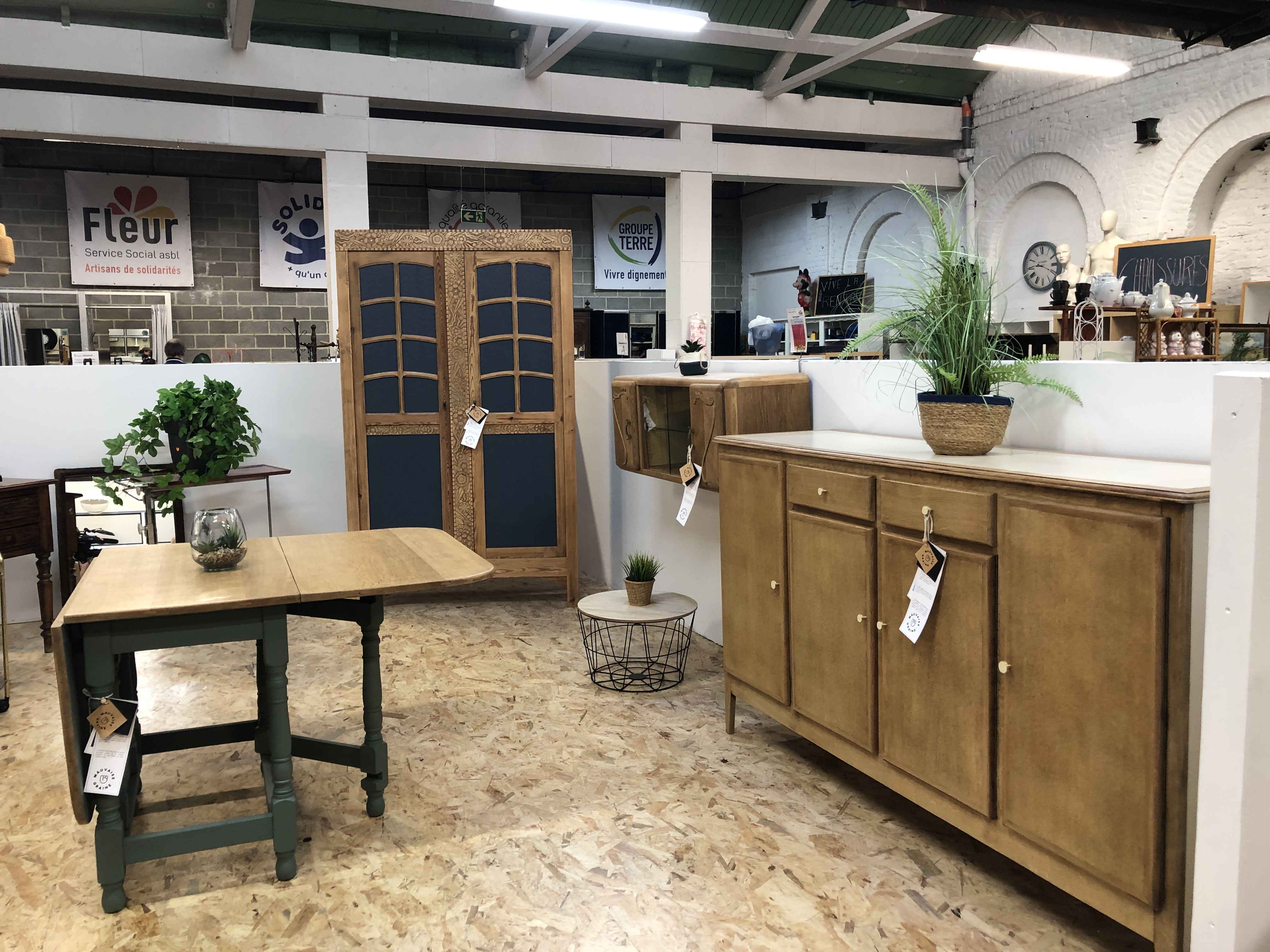 Une fois rénové, les meubles trouvent place dans le magasin un peu plus loin dans la rue Defrêcheux. Un espace spécifique leur est dédié. Avec un label : Mauvaise Graine, du nom de l'atelier "Ici, les meubles un peu usés, abîmés, on leur "redonne un peu d'eau" et ça redevient une jolie fleur... comme une mauvaise graine. Un clin d'oeil au nom de l'asbl Fleur" précise Erika