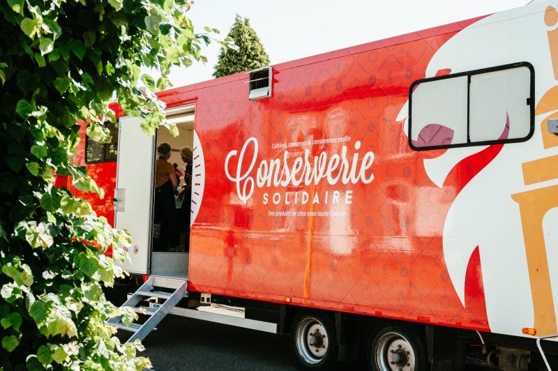 Aménagée dans un véhicule grâce à des fonds européens, la Conserverie solidaire est un atelier itinérant de sensibilisation et de formation aux techniques de conservation des fruits et légumes. Les techniques ancestrales de mise en conserve (sucre, sel, vinaigre...) y sont privilégiées. Les publics visés sont autant des personnes défavorisées, en vue de leur faire acquérir une autonomie alimentaire, que des citoyens ou groupements souhaitant valoriser leurs propres récoltes grâce à des techniques de conservation naturelles ou encore des professionnels et futurs professionnels.