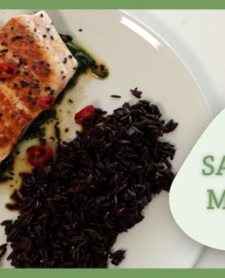 IngrédientsPour 4 personnes :- 4 pavés de saumon (comptez entre 150 et 200gr par personne)- 800gr d’épinards frais ou surgelés entiers- 250gr de riz noir ou basmati - 4 càs d’huile de sésame- 2 càs de graines de sésame- 4 gousses d’ail- 1 piment doux frais- 4 càs de sauce soja- 2 càc de gingembre moulu ou râpé- 4 càs de mirin ou vinaigre de riz- Sel, poivreRecette1. Faites bouillir de l’eau. 2. Pendant ce temps, préparez la sauce en mélangeant la sauce soja, le mirin, le gingembre et le piment émincé (quantités selon votre goût).3. Cuisez le riz selon les indications sur le paquet.4. Mettez 2 càs d’huile de sésame dans une poêle sur feu vif, avec l’ail en morceaux. 5. Ajoutez les épinards, un peu de sel et laissez-les fondre et remuant de temps en temps. Réservez.6. Dans la même poêle, mettez 2 càs d’huile et remettez sur le feu. 7. Quand elle est bien chaude, saisissez le saumon sur les 2 faces. Salez légèrement, poivrez.8. Servez le saumon sur la tombée d’épinards, accompagné du riz. 9. Parsemez de sésame et servez avec la sauce d’accompagnement.Cette recette est proposée en collaboration avec Nutripauquet.